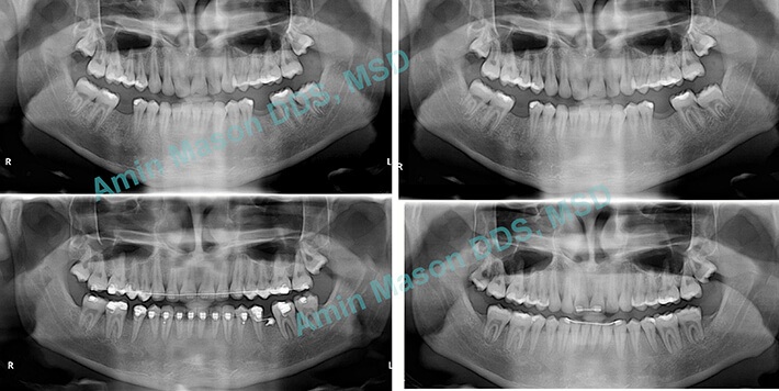 An adult patient with missing mandibular first molars. TADs were used to protract (pull forward) the 2nd and 3rd molars (wisdom teeth). The patient was saved from getting implants for the missing teeth.